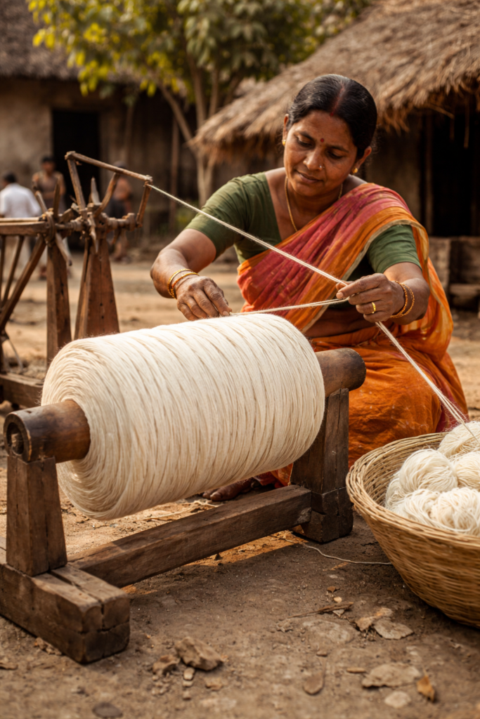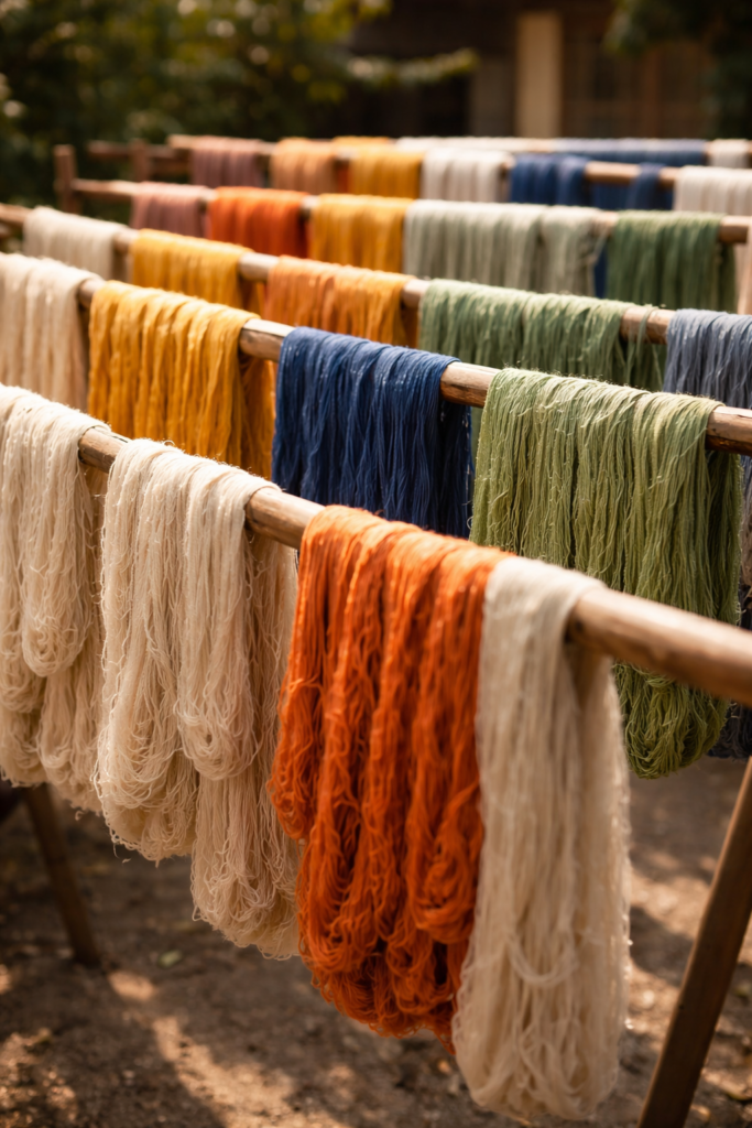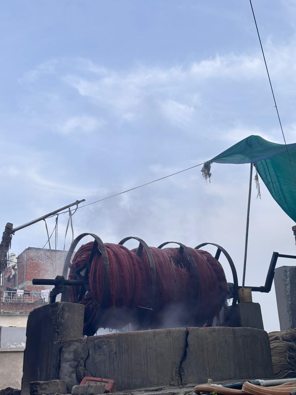 Drying yarn gently locks in the color and strength while preparing it for weaving into a rug.