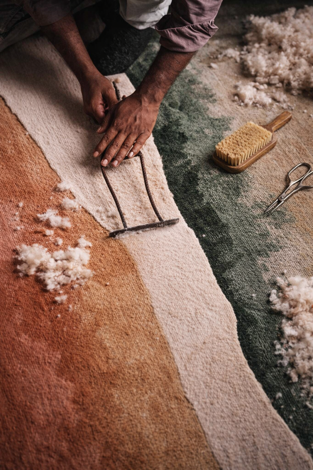 Dyeing breathes life into yarn by infusing it with rich colors that define the character of a handmade rug.